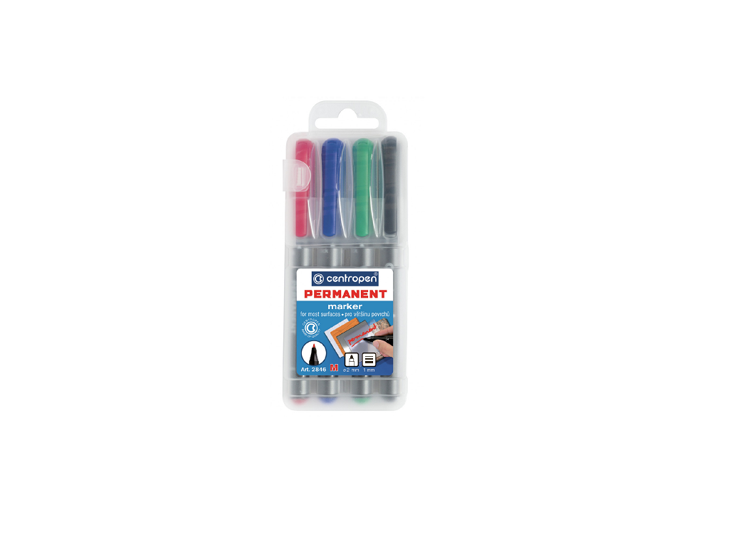 Popisovač Centropen 2846 permanent sada 4ks šíře 1mm (černá, modrá, zelená, červená)